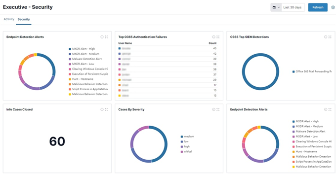 With these new dashboards, you get a high-level overview of any detection alerts, authentication failures, cases involved, and more, to further your understanding. With a quick glance at a dashboard, you get a clear picture, enabling you and your team to act as quickly as possible. What's more, these are available for you out-of-the-box, so you don't have to do any legwork in the back end to build out the reports.