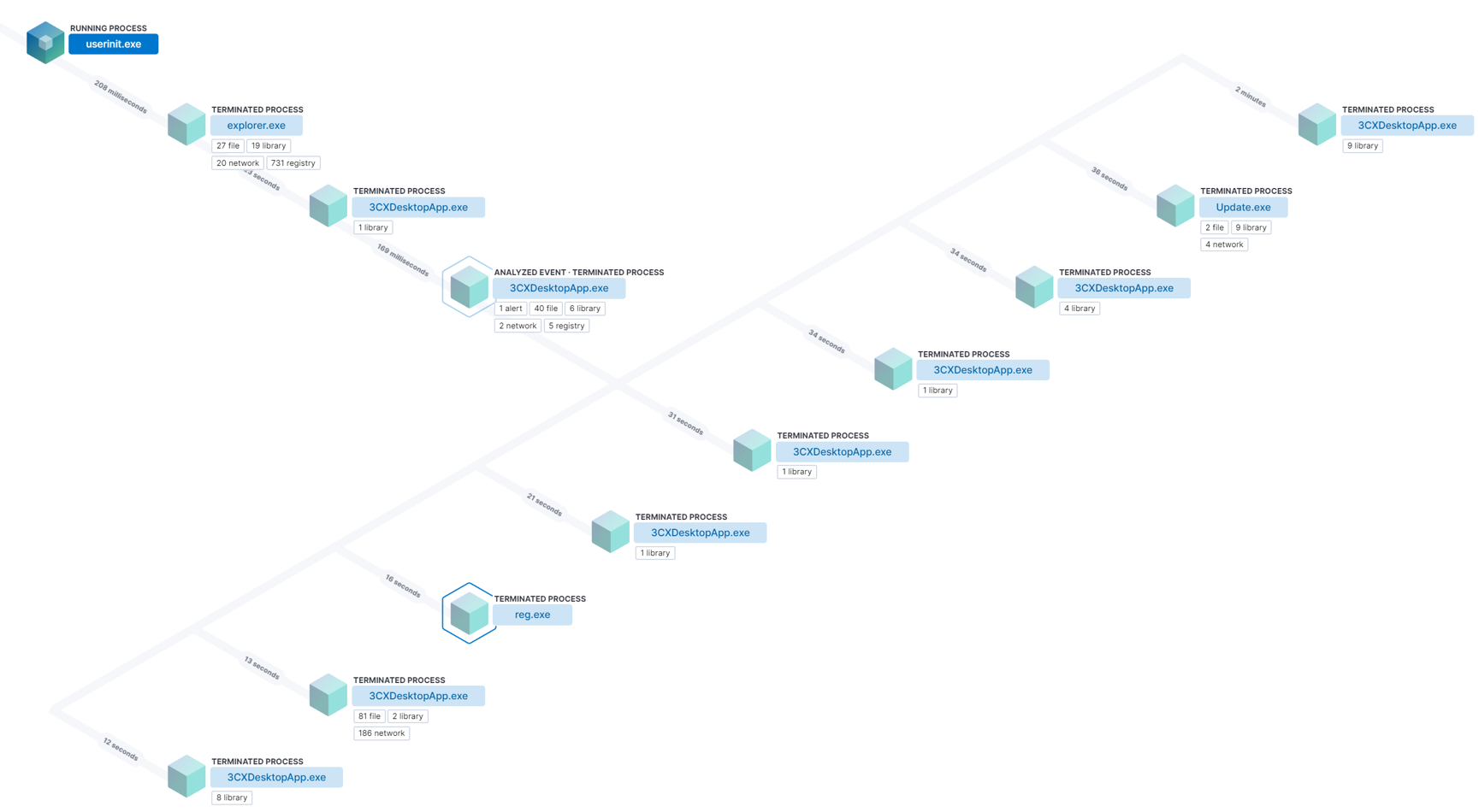 Figure three below shows the process lineage highlighting the parent child relationships and self-injection of 3CXDesktopApp[.]exe.