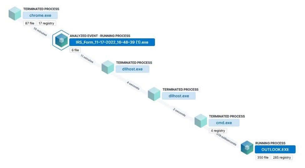 On November 17, 2022 Todyl’s MXDR team observed new infections from a campaign that included the IcedID Trojan, first discovered in 2017 by IBM X-Force[1]. This new activity targets users in the US with IRS notifications and file names such as IRS_Form_11-17-2022_16-48-39.exe. These infections differ from the Emotet activity seen by Proofpoint[2] in recent weeks because the actor used a re-registered parked domain to host the malware.
