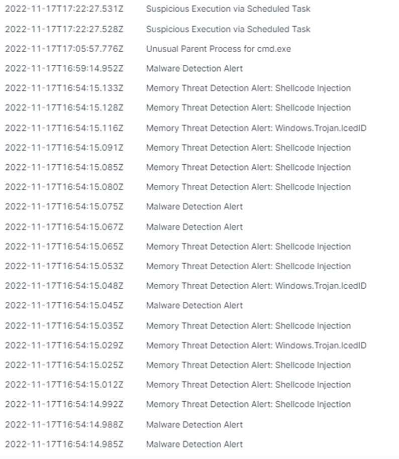 Activity such as this illustrates the need for a comprehensive security platform that not only looks at the endpoint, but also pulls in correlation data to a SIEM from Network, DNS, and Proxy, among others.