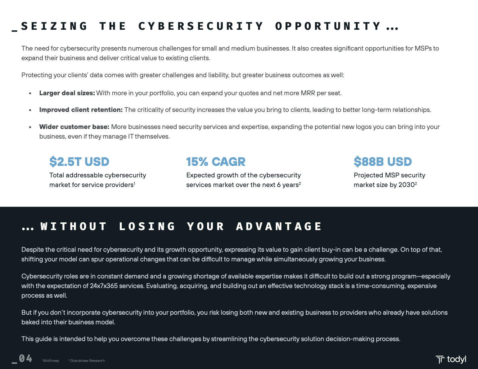 Don’t become a statistic or lose business opportunities to others who have cybersecurity already baked into their offerings. Use this guide to inform your cybersecurity tool stack decisions and deliver secure IT services to your clients.
